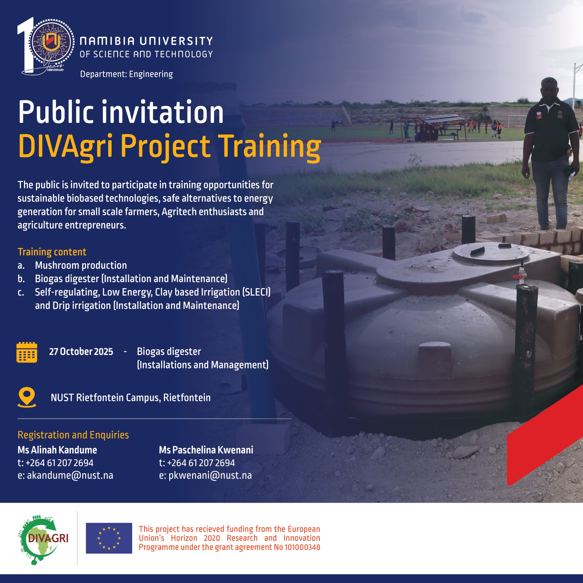 The public is invited to participate in training opportunities for sustainable biobased technologies, safe alternatives to energy generation for small scale farmers, Agritech enthusiasts and agriculture entrepreneurs.